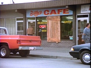 The building on Station Street (left) used for the exterior of the Challengers Center was destroyed shortly after the series ended, but all interior scenes were shot at the studio (right). In this picture from August, 1990, the set is still decorated for the episode "The Gun."