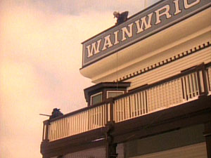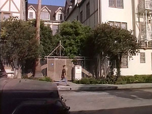 A real houseboat existed at the Bute Marina in Coal Harbour, Vancouver (left). It was a private home and was used for shooting exterior scenes, but interior scenes were shot on the soundstages at the Bridge Studios in Burnaby (right).