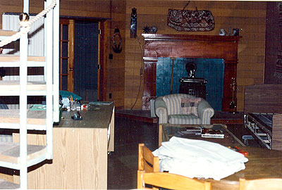 The spiral staircase and the living room area. The set had no ceiling, and the walls were moveable to allow cameras to shoot from any angle. The staircase led to nowhere. The loft bedroom was a separate set built next to the main set.