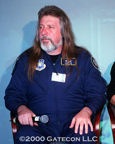 Rick has been an avid science fiction fan since even before he was a gaffer. "Oh, huge, huge!" he declares. "I used to sit and watch Star Trek and eat dinner every day." Looking down at the alien prominently displayed on his shirt, he admits with a grin, "Most of my clothes have aliens on them somewhere." Being a fan himself, he truly enjoys mingling with the fans of Stargate whom he has had the opportunity to meet. He has attended the Gatecon conventions in Vancouver, and has volunteered his time to conduct the tour of the studio for certain lucky fans. It gives him the opportunity to do what he loves, to share science fiction, to work with lights, and to meet other fans. "I do all the tours for the contest winners, and I do a bit of a show for them. I have them in the halls, and have the red flashers come on, and tell them it's an unauthorized incoming wormhole. And then we have the iris in with the interactive going on, like the gate's really active. It's the only way to make it look like the gate's really working without getting cheesy. It's so much fun. I did it the first year, and it was so much fun that I volunteered again last year." With the enthusiasm of a fan, he declares, "I just do it on my own time because I love the show and I think it's great that fans go to this trouble to come here and show their appreciation, you know? I just love it!"