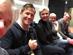 Richard sent another selfie during the morning panel, and added a tongue-in-cheek photo (pun intended) during a break: