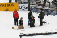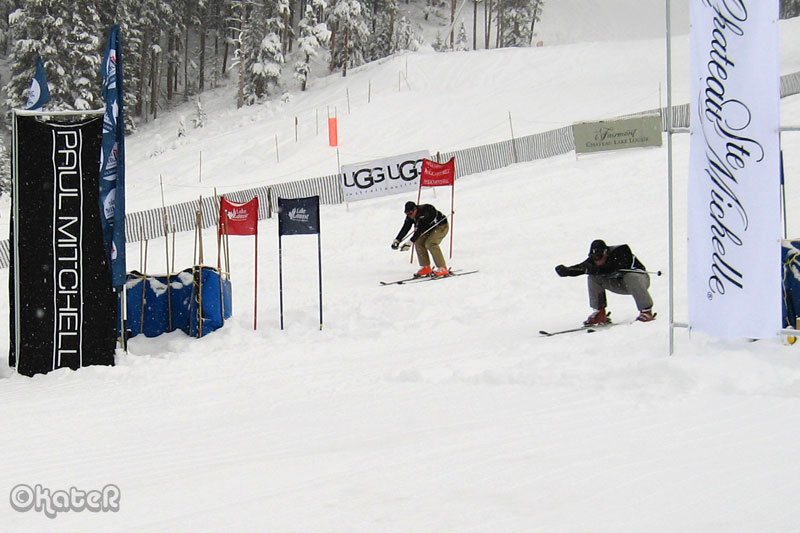 The main event on Friday included the snowshoe/toboggan relay race in which one team member showshoed through an uphill obstacle course, then passed off to a partner, who rode a toboggan back down the hill. Richard participated in the race twice by taking the toboggan leg of the race, first with Amanda Tapping and then with Ben Browder as his partners. Saturday began with the slalom race. Richard raced twice against Robert Kennedy, beating him by a full gate in the first race, but just barely coming in behind him in the second. However, he proudly declared that his performance had earned him the "best time overall." Saturday night brought the gala dinner, auction, and concert by Lyle Lovett and his band. Richard mingled with fans during the cocktail hour and posed for pictures. Following the dinner, as the live auction drew to a close, Richard made a donation of $10,000 to support Waterkeeper, and another $10,000 was offered by one of the women from Waterkeeper in exchange for a kiss from Richard. All in the name of a good cause, Richard was happy to oblige.