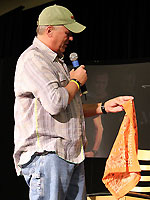 When it was time for Richard's first Question and Answer panel of the day, he returned to the stage calling, "I'm back!" The first thing he did was to empty his pockets, and he pulled out an orange bandana, which he unfolded and held up to the audience, asking, "Remember this? Girls, speak out!"