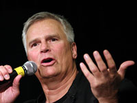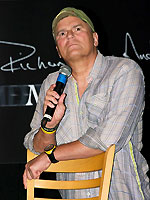 At this point, the panel had come to an end, and the emcee approached the stage to close the session. Reluctant to leave, Richard tried to negotiate more time, to the delight of the audience. "Two more questions! Yeah, two more questions! Here we go! There's one! Go ahead! What's your question?" In response, the emcee ordered that his mike be cut, but Richard turned to the tech crew and pantomimed pulling money from his pocket and counting out the bills as a bribe. With his mike restored, he shouted triumphantly, "Thank you!" and then apologized to the audience as he left the stage, "I'm sorry! I tried! Bye!"