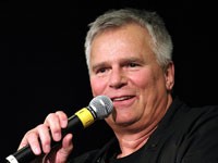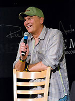 He went on to say that "MacGyver" will probably be around forever because "he was basically a nice guy and a unique TV hero in a time when TV really needed a unique type of hero." It was a time when the A-Team was blowing up everything indiscriminately, but then "MacGyver came along and he did it nicely." He related the story of his rafting trip to Futelefu in Chile. He stumbled over the grammar as he began the sentence "The two guides I was traveling with..." wondering aloud if it should be "two guides was" or "two guides were," trying out each version, asking the audience, and finally settling on "I was with two guys that happened to be guides!... And we was traveling down the river." Futelefu is an extremely remote town with dirt roads, no television, no exposure, and the guides were taking bets on whether anyone would recognize Richard when they arrived in the town. No one had taken the bet that he would be recognized, but as they walked into a little place to get something to eat from the selection of "molded cheese and dry bread," a little kid who didn't speak a word of English went running to the back, and when he returned, "Sure enough, I was 'MacGeever'!" So in answer to the question, he concluded, "Yes, I get that all the time."
