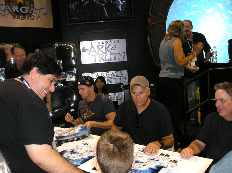 On the red carpet, Richard Dean Anderson joined Stargate celebrities including Amanda Tapping, Michael Shanks, Christopher Judge, Ben Browder, Beau Bridges, writer and executive producer Brad Wright, and director Martin Wood. On Friday, Richard again joined his colleagues for a Stargate panel, and he participated in an autograph session at the Stargate booth, all to promote the release of "Stargate Continuum" on July 29th.